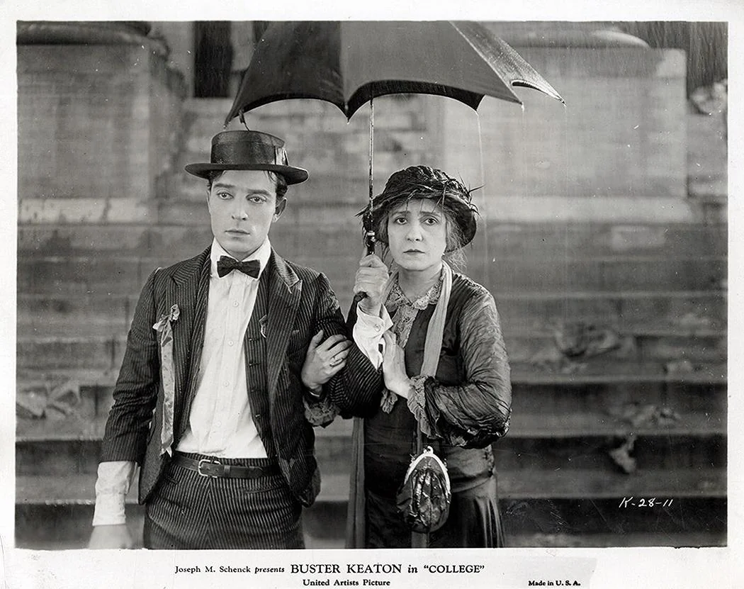 The great film actor-director Buster Keaton (1895–1966) was himself no nerd. Keaton, in fact, was an athlete through and through. His outrageously dangerous stunts demonstrated fearlessness fused with a unique physicality. Keaton staged and performed in scenes that had him swinging and leaping from moving cars, trucks, and trains, enduring terrifying falls, and subjecting himself to life-threatening situations that, along with his genius for story-telling, propelled him to the top in the silent film era. Keaton’s athleticism didn’t deter him from taking on the role of the awkward “nerd” (before such a term existed) for the 1927 comedy-drama, College, directed by James W. Horne with Keaton, and starring Keaton, Anne Cornwall, and Harold Goodwin. Paradoxically, Keaton applies his personal athleticism in full force to his athletically-challenged character in College. The results are classic Keaton: a kind of all-in physical comedy that has audiences in stitches and reshapes the boundaries of physical comedy for the future.
